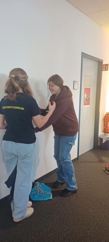 Bei der Station „Feuerwehr“ zeigte diese den 9ern Sprungübungen, die sie im Training durchführen.