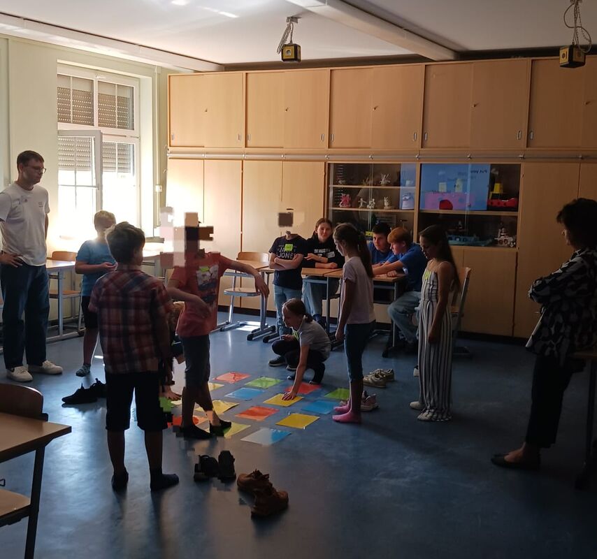 Anschließend wurden die Kinder in Gruppen eingeteilt, welche jeweils von 2 Schülern der Klasse 8 und 9 begleitet wurden.