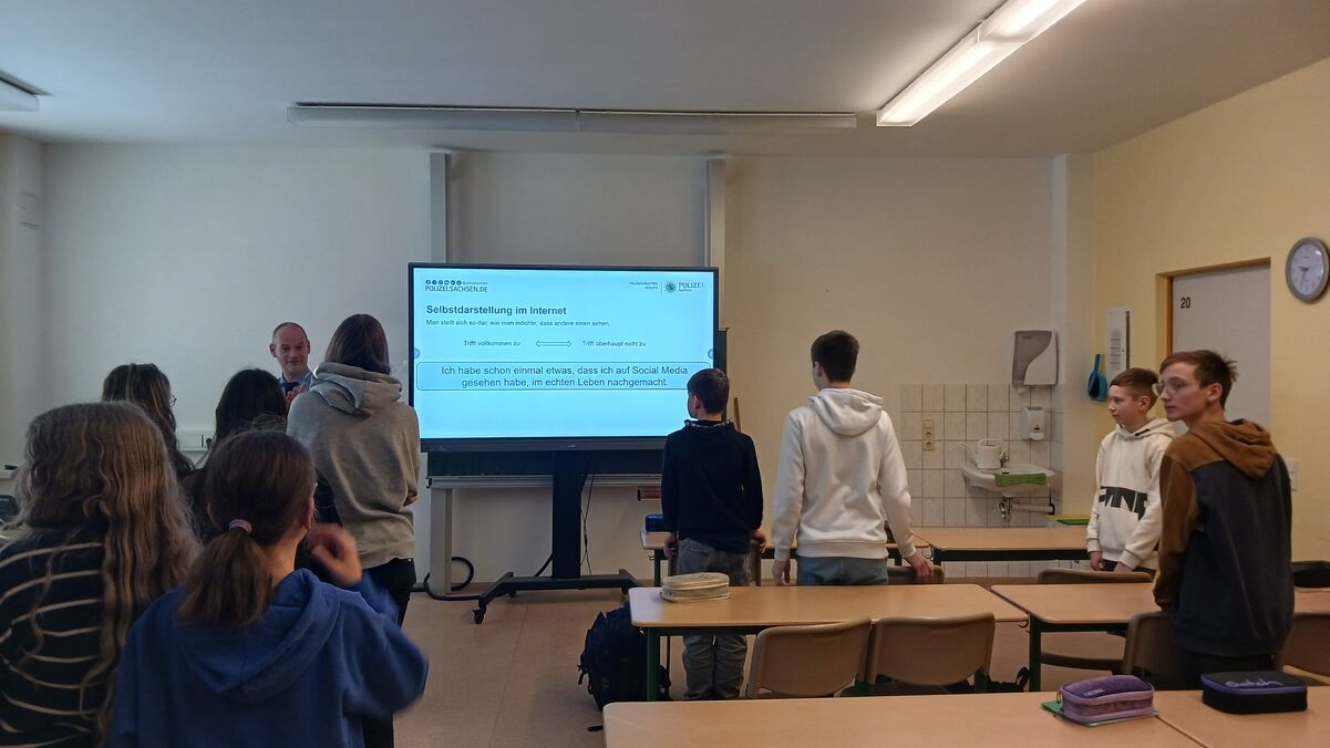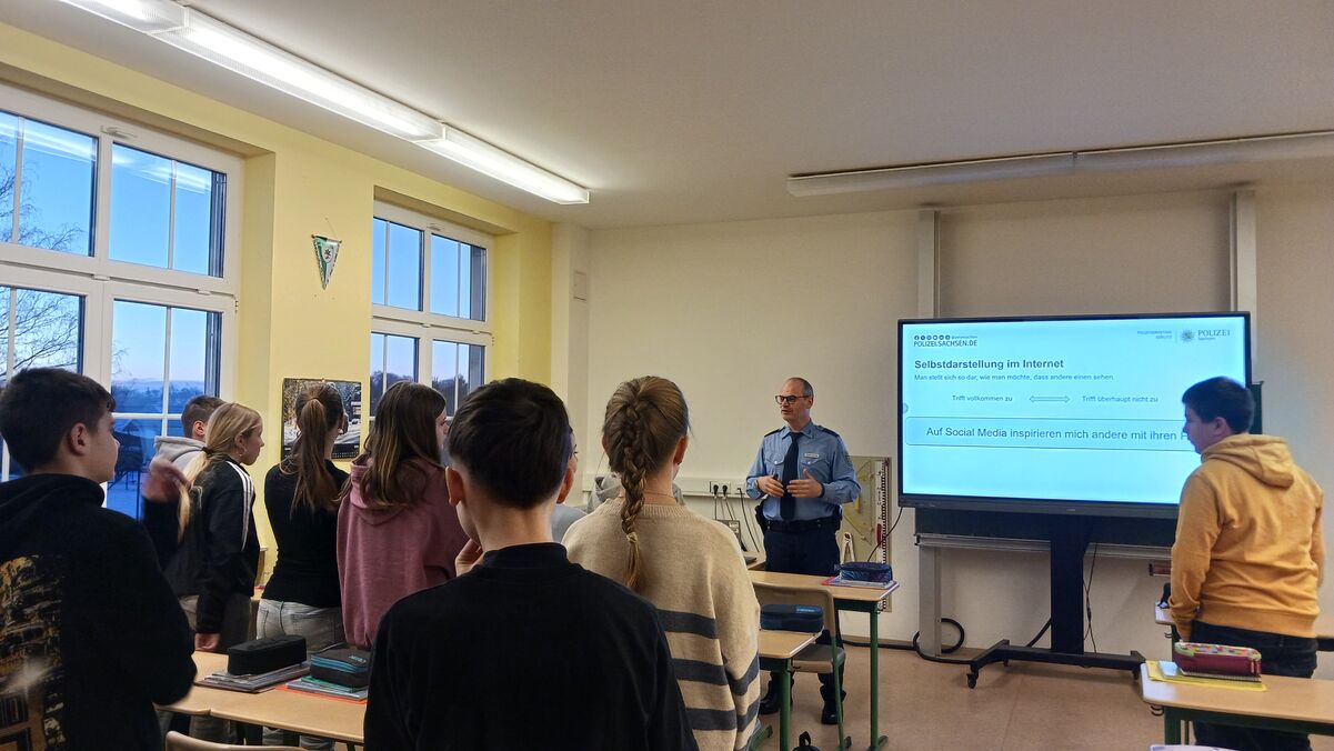 Am 06.01.2026 kam Herr Hornig von der Polizei in die 7. Klassen und bearbeitete mit ihnen das Thema "Selbstdarstellung im Internet".